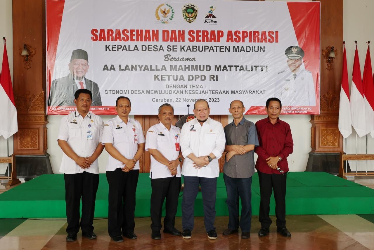 Ketua DPD RI AA LaNyalla Mahmud Mattalitti saat hadir di acara "Sarasehan dan Serap Aspirasi Masyarakat Asosiasi Kepala Desa Kabupaten Madiun" bertajuk "Otonomi Desa untuk Mewujudkan Kesejahteraan Rakyat", Rabu (22/11/2023), di Kantor Bupati Madiun itu mengatakan, salah satu hal yang harus dapat dilakukan pemerintah desa adalah dengan melakukan optimalisasi terhadap keberadaan dan peran Badan Usaha MiliK Desa (BUMDes).