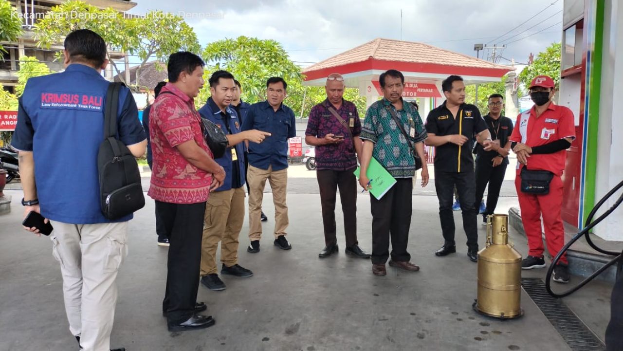 Bali || IPERS Antisipasi kecurangan Ditreskrimsus Polda Bali bersama bidang metrologi dan tertib niaga Disperindag kota Denpasar sidak SPBU seputaran Denpasar, kamis 28-3-2024.