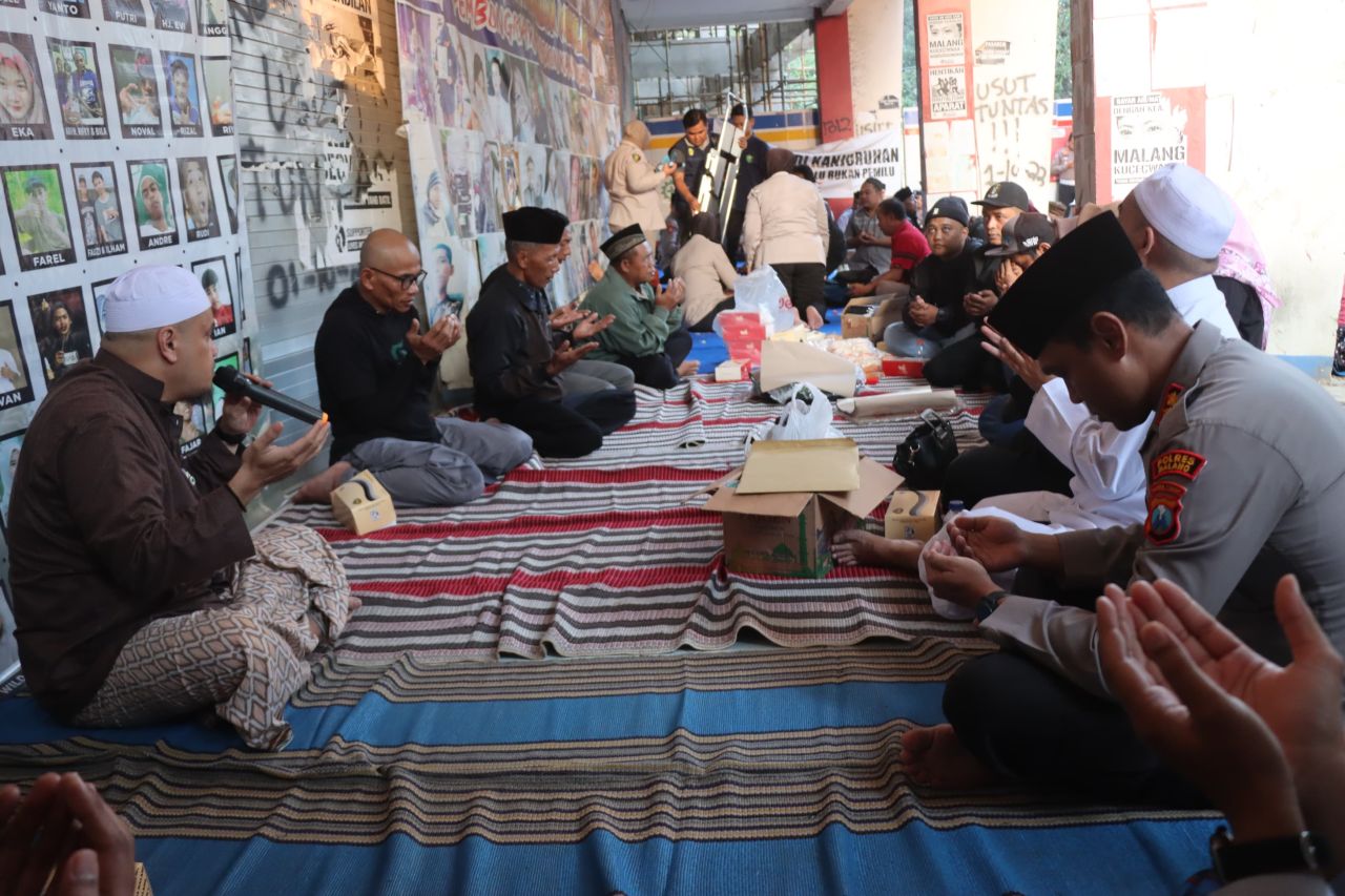 MALANG || IPERS - Kepolisian Resor Malang (Polres Malang), Polda Jawa Timur, bersama keluarga korban Tragedi Kanjuruhan menggelar doa bersama di Pintu 13 Stadion Kanjuruhan, Kepanjen, Kabupaten Malang.