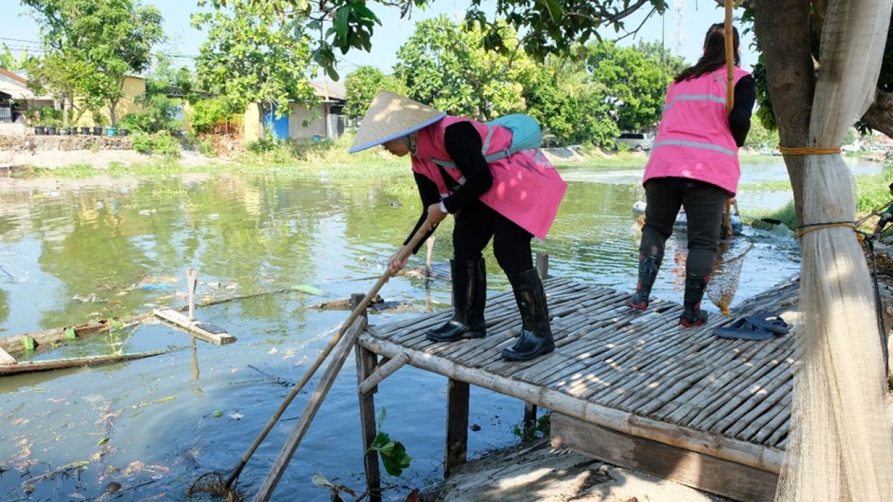 Tim Srikandi PT PLN (Persero) UIP JBTB dalam kegiatan Employee Green Involvement Tahun 2024 PLN UIP JBTB di Wilayah Susur Sungai Kejawan Putih Tambak, Kelurahan Kejawan Putih dan Kelurahan Sukolilo, Kecamatan Mulyorejo, Surabaya. (Foto: Doc/istimewa)