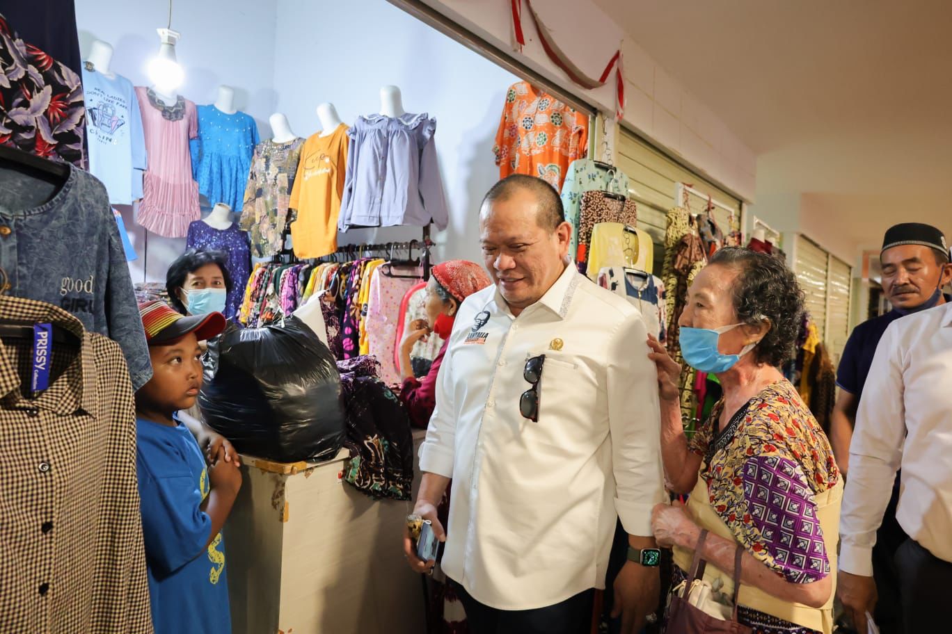 Dalam kesempatan itu, LaNyalla yang didampingi Staf Ahli Ketua DPD RI, Baso Juherman diterima oleh GM Pasar Turi Teddy Supriyadi, Asisten Perekonomian dan Pembangunan Pemkot Surabaya Irvan Widyanto, Direktur PT Gala Bumi Youhin dan Wakil Koordinator Keamanan Tim 8 Pasar Turi, Abah Supeno.
