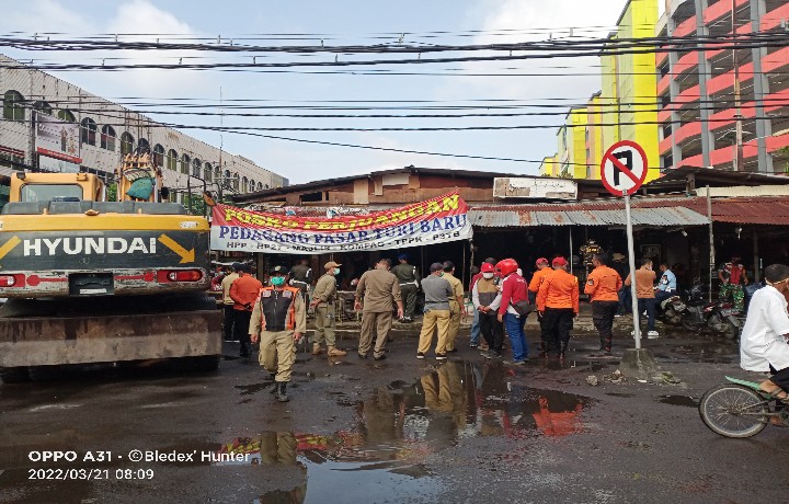 Surabaya,IPers - Dalam mendukung program pemerintah kota Surabaya, Pemuda Pancasila bersinergi dengan pemkot surabaya dengan melakukan giat giat sosial dan kemanusiaan, hari ini senin tanggal 21 Maret 2022 pemuda pancasila membantu upaya kelancaran pemerintah kota Surabaya untuk merelokasi lapak-lapak di Pasar Turi depan PMK Surabaya,