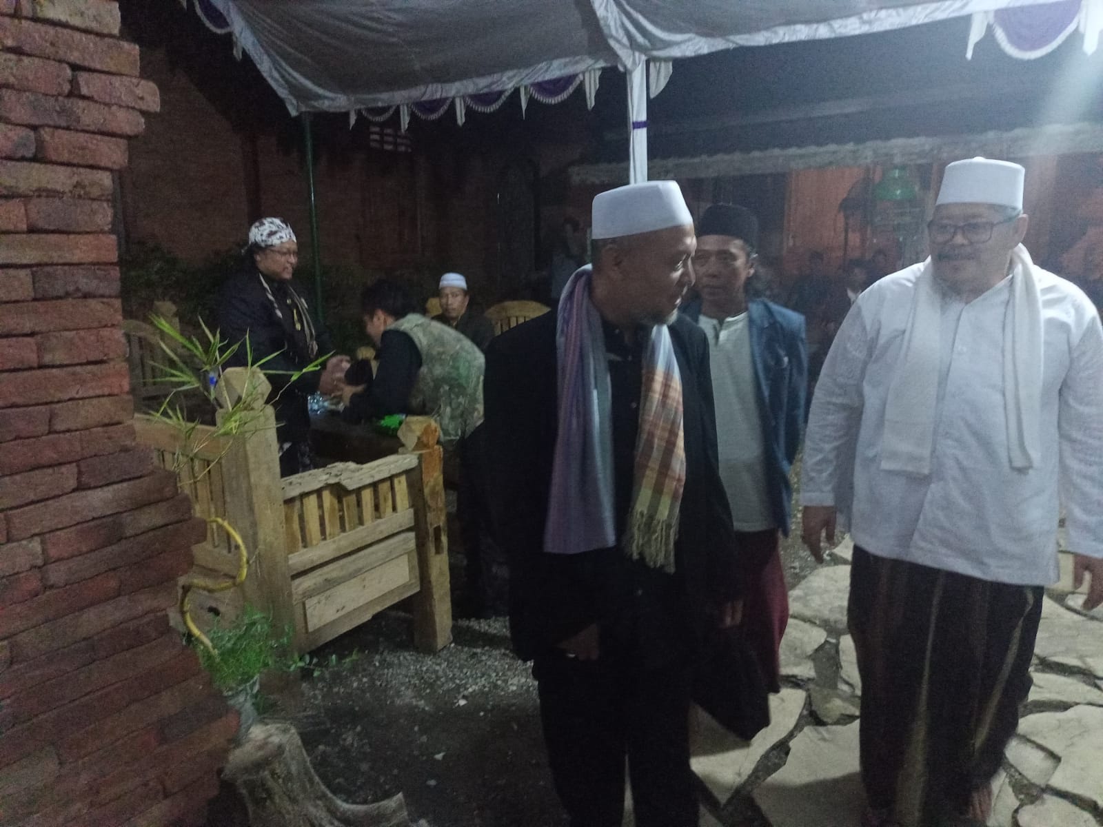 Grobogan,IPers -Pengasuh Pondok Pesantren Alluwung Berdzikir Sragen Abah Anto bersama pengurus santri Alluwung Eling Ngawi Gus Ton, menghadiri acara pengajian akbar dalam rangka Haul Khotmil Qur'an Wisuda dan Akhirussanah Ponpes TPQ Madin, dihalaman Masjid Baitusyakur Galeh Wardoyo Grobogan.