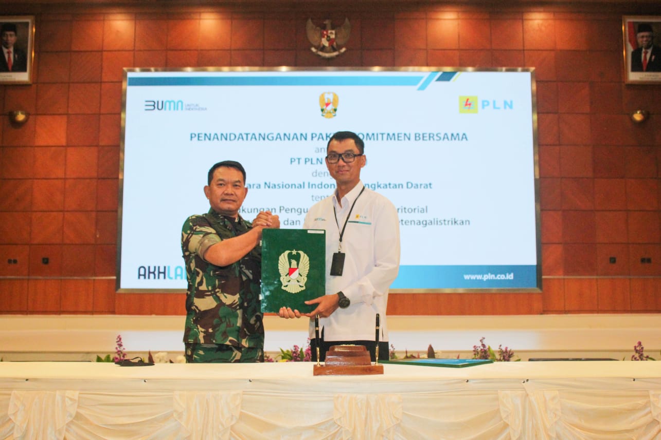 Jakarta, IPers - 20 April 2022. PT PLN (Persero) mendapatkan dukungan dari Tentara Nasional Indonesia Angkatan Darat (TNI AD) dalam pengembangan pembangkit energi baru terbarukan di daerah terpencil. Dukungan ini tertuang dalam Penandatanganan Pakta Komitmen PLN-TNI AD tentang Dukungan Penguatan Pembinaan Teritorial di Kantor Pusat PLN, Jakarta pada Selasa 19 April 2022.
