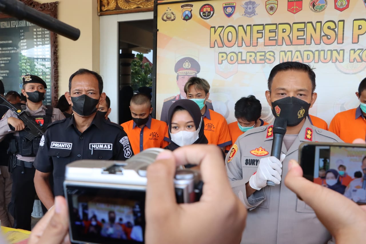 KOTA MADIUN, IPers – Kepolisian Resor (Polres) Madiun Kota mengamankan 10 tersangka yang memperjualbelikan narkotika.