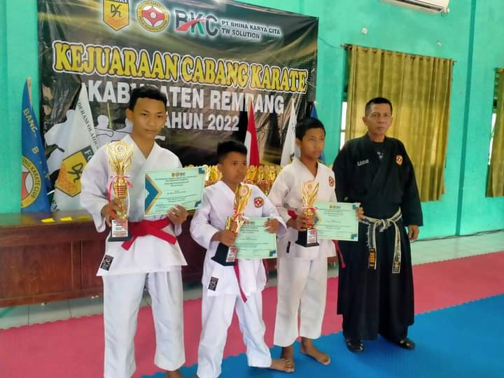Rembang,IPers - Digelarnya kejuaraan lomba cabang karate dengan kelas katagori pemula dan komite kategori pemula yang di adakan di rumah Dinas Wakil Bupati Rembang, juara satu diraih oleh Nur Fadhli Alhasbi putra pasangan Mashudi dan ibu Juwati asal Desa Sale Rembang Jawa Tengah. Minggu (19/6/22)