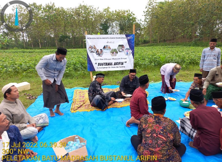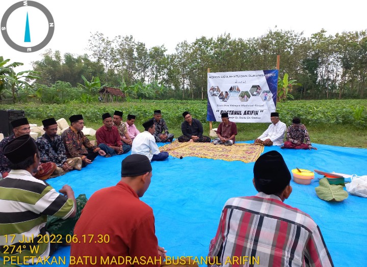 Rembang, Ipers. Dengan ditandainya peletakan batu pertama sebagai simbol dimulainya pembangunan madrasah Bustanul Arifin yang terletak di Desa Gunungmulyo kecamatan Sarang Kabupaten Rembang, pada hari Ahad tanggal (17/7/2022) jam 07:00 WIB. Oleh Gus Mamak (Ahmad Ahdal Abdurrohim) yang juga disaksikan Kepala Desa Gunungmulyo.
