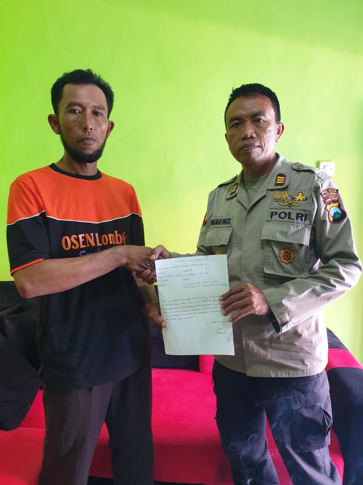 Berbekal laporan dari korban, anggota Unit Reskrim Polsek Dringu melakukan penyelidikan dan pengejaran hingga berhasil menangkap tersangka di Dusun Kalianyar Desa Sumbersuko Kecamatan Dringu Kabupaten Probolinggo.