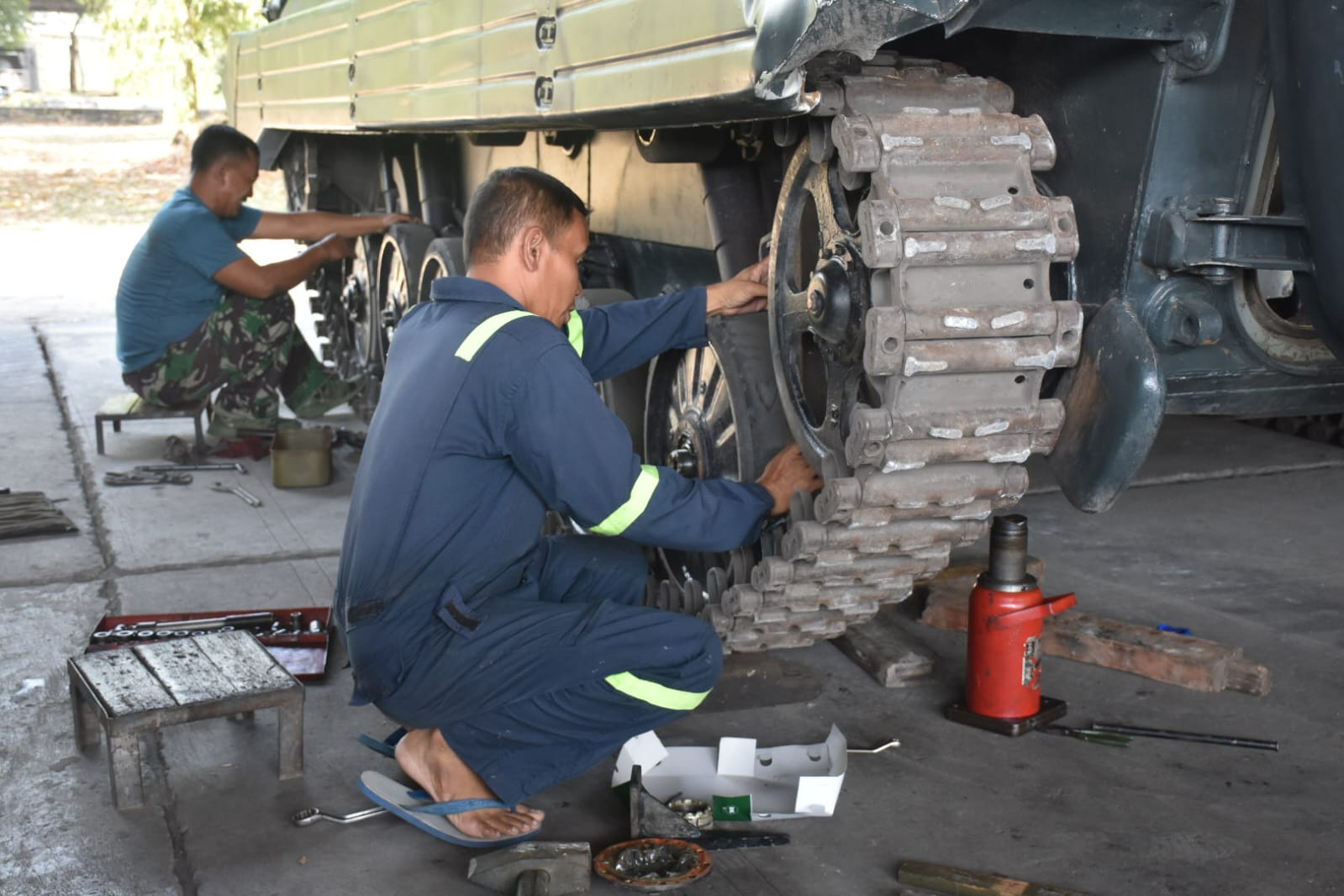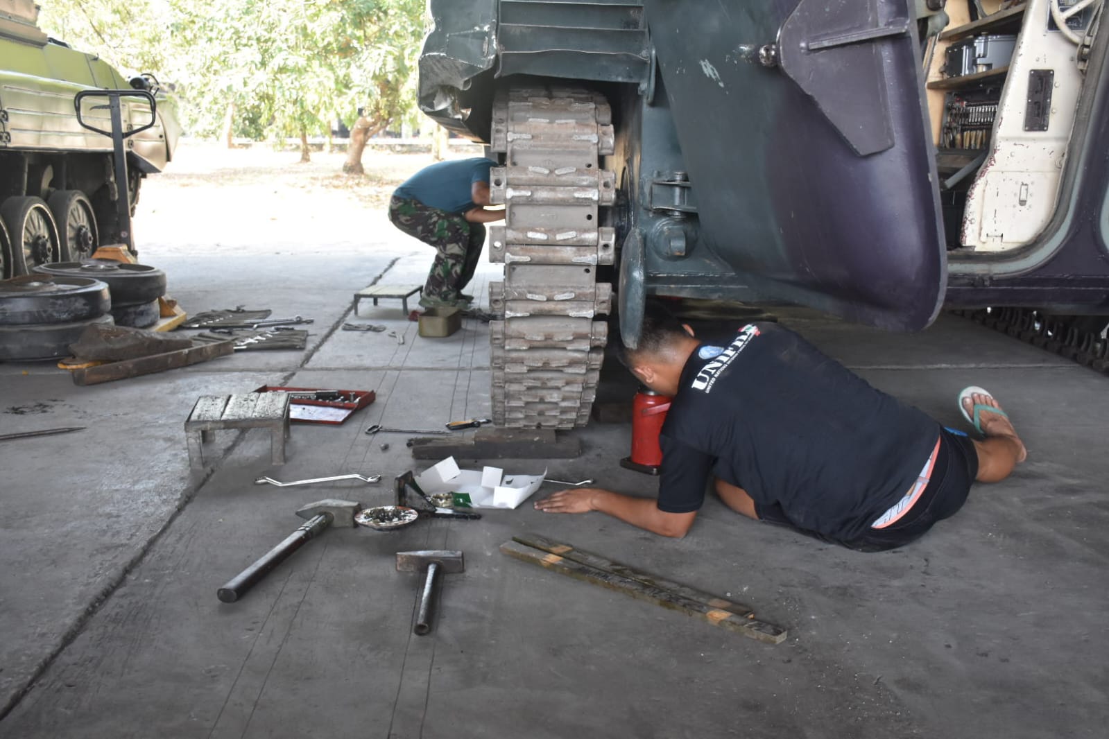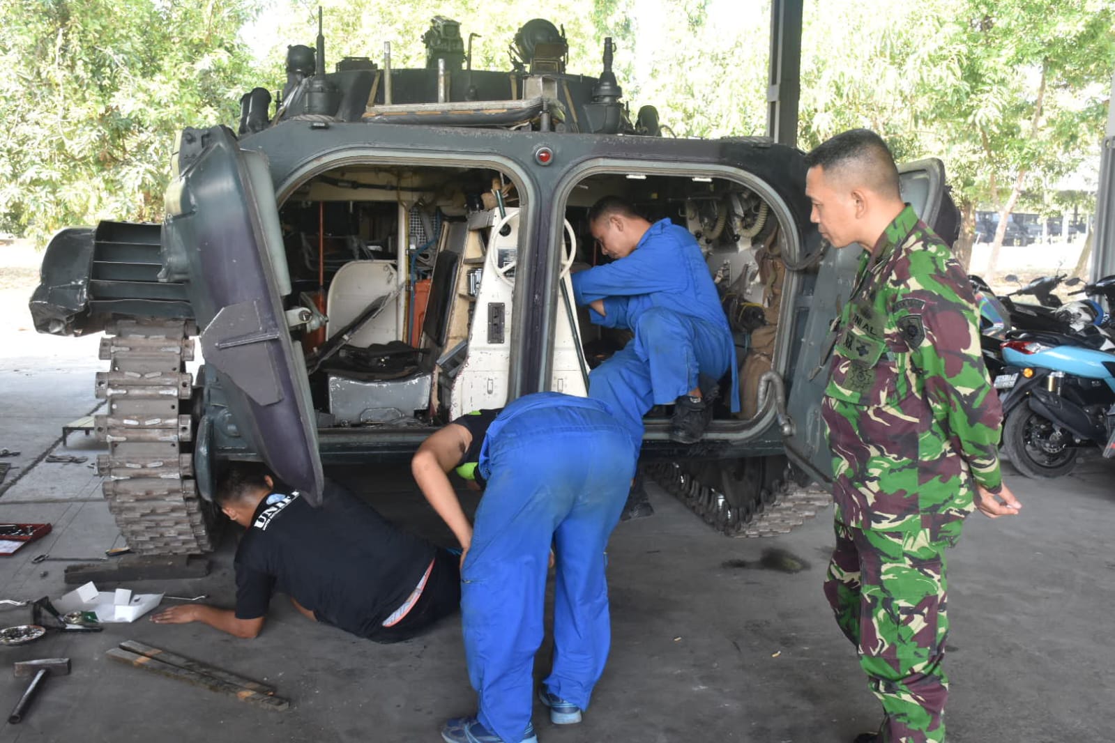 Surabaya, IPers - (Dispen Kormar). Dalam rangka memelihara kesiapan dan menjaga kemampuan Alutsista agar siap tempur, Prajurit Batalyon Arhanud 2 Marinir melaksanakan Pemeliharaan dan Perawatan (Harwat) Kendaraan Tempur (Ranpur) BVP-2 di Gun Park Yonarhanud 2 Mar, Ksatrian Marinir Sutedi Sena Putra Karang Pilang, Surabaya. Rabu (28/09/2022)