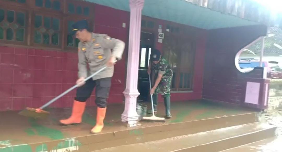 ”Hari ini kami bersama anggota Brimob, Polsek, Koramil, BPBD, PMI, dan tim relawan lainnya bersama-sama membantu masyarakat membersihkan lokasi paska bencana banjir,” tutur Kapolsek.