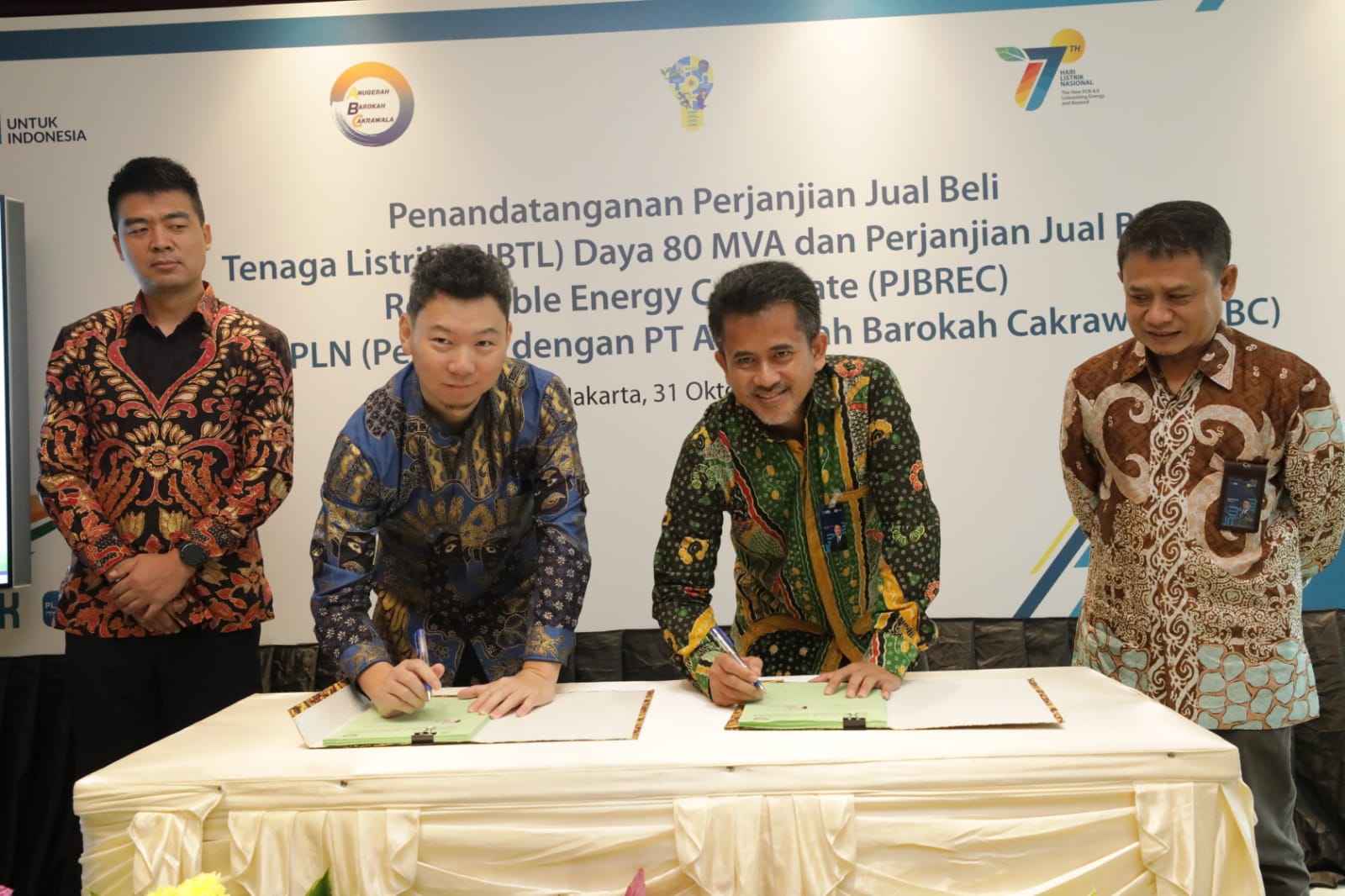 Komitmen tersebut terwujud dalam penandatanganan Perjanjian Jual Beli Tenaga Listrik (PJBTL) Daya 80 MVA dan Perjanjian Jual Beli Renewable Energy Certifcate (PJBREC) antara PLN dengan bersama PT ABC di Kantor PLN Pusat, Jakarta pada Senin (31/10).