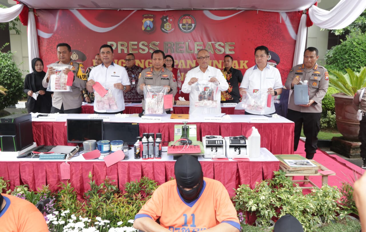 Dalam ungkap tersebut Kapolda Jatim Irjen Pol Toni Harmanto bersama Direktorat Tindak Pidana Ekonomi dan Khusus (Dirtipideksus) Bareskrim Polri Brigjen Pol Whisnu Hermawan, Direktorat Reserse Kriminal Khusus (Dirreskrimsus) Polda Jatim dan Kapolres Kediri AKBP Agung Setyo Nugroho, serta dihadiri oleh Kepala Koordinator Wilayah (Korwil) BI Jawa Timur Budi Hanoto dan instansi lainnya dari Kejaksaan Tinggi Jawa Timur dan Bea Cukai Jawa Timur.