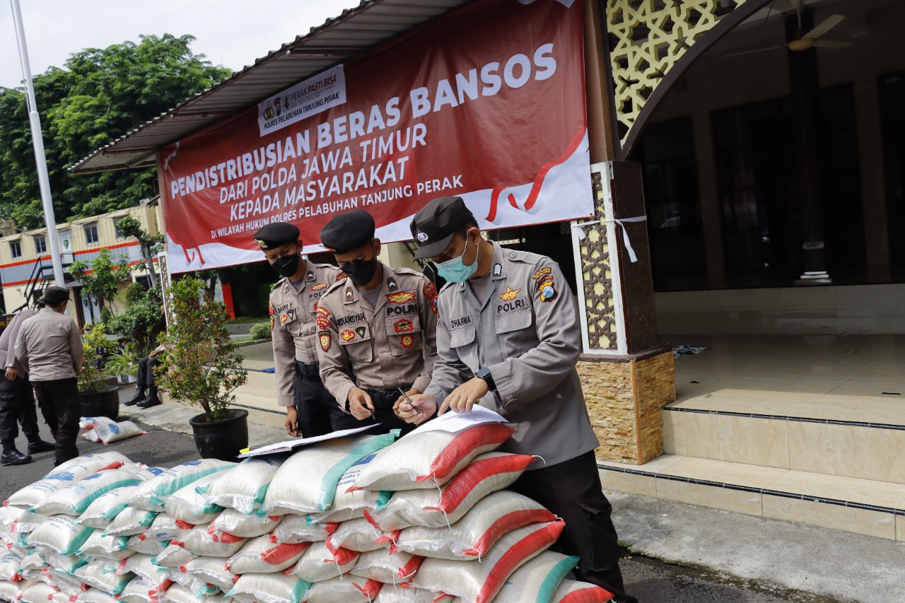 “Pembagian beras di lakukan oleh Kapolres melalui Kompol Gandung Gunardi selaku Kabaglog secara langsung di Mapolres Pelabuhan Tanjung Perak Surabaya kepada masyarakat yang berhak menerima,” jelas Anton.