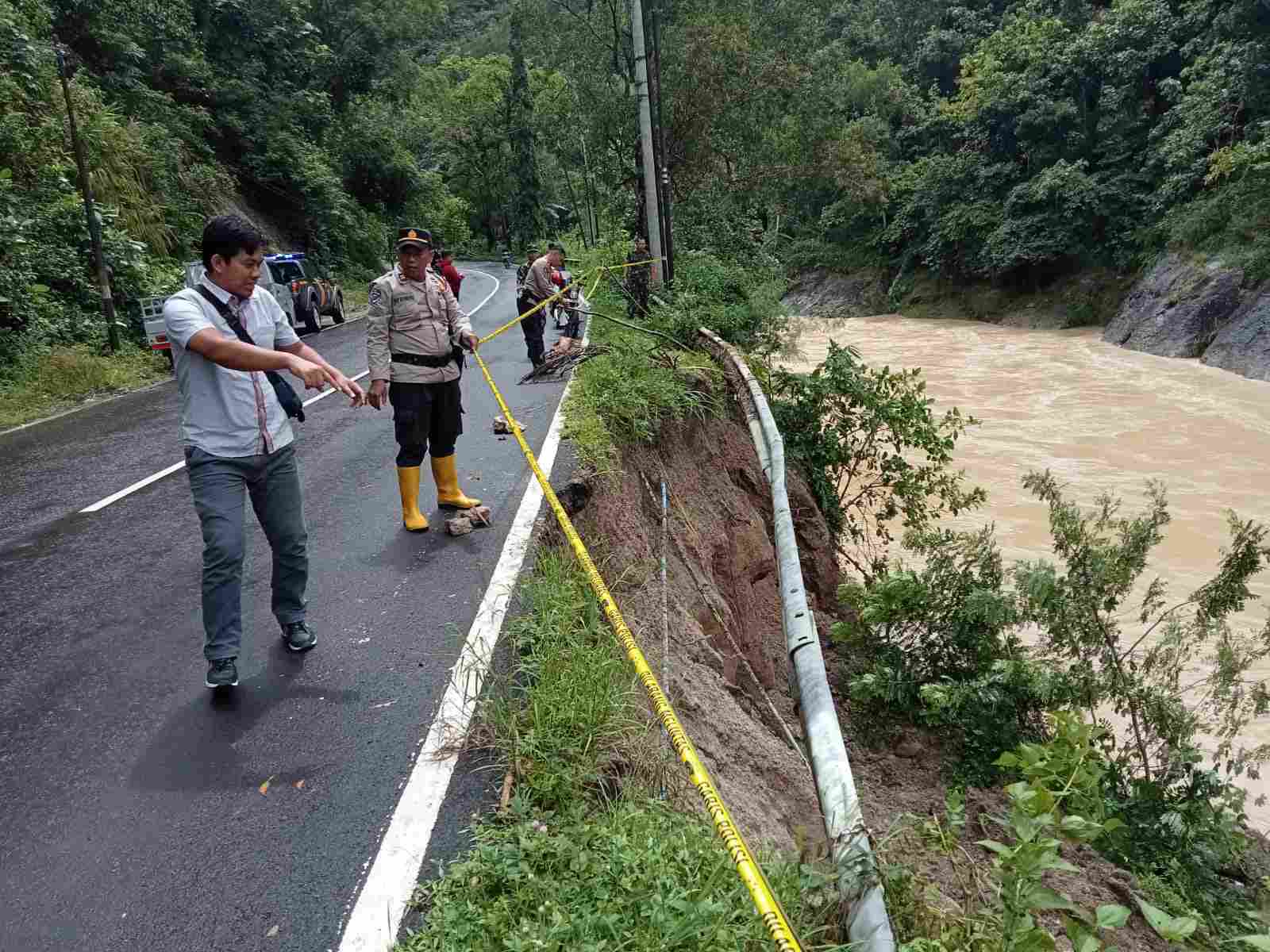 "Berkaitan dengan kejadian longsor di Desa Jeruk Kecamatan Bandar kami mengirimkan anggota gabung bersama tim TRC mengecek lokasi dan memberikan garis polisi agar masyarakat tidak mendekat,"katanya