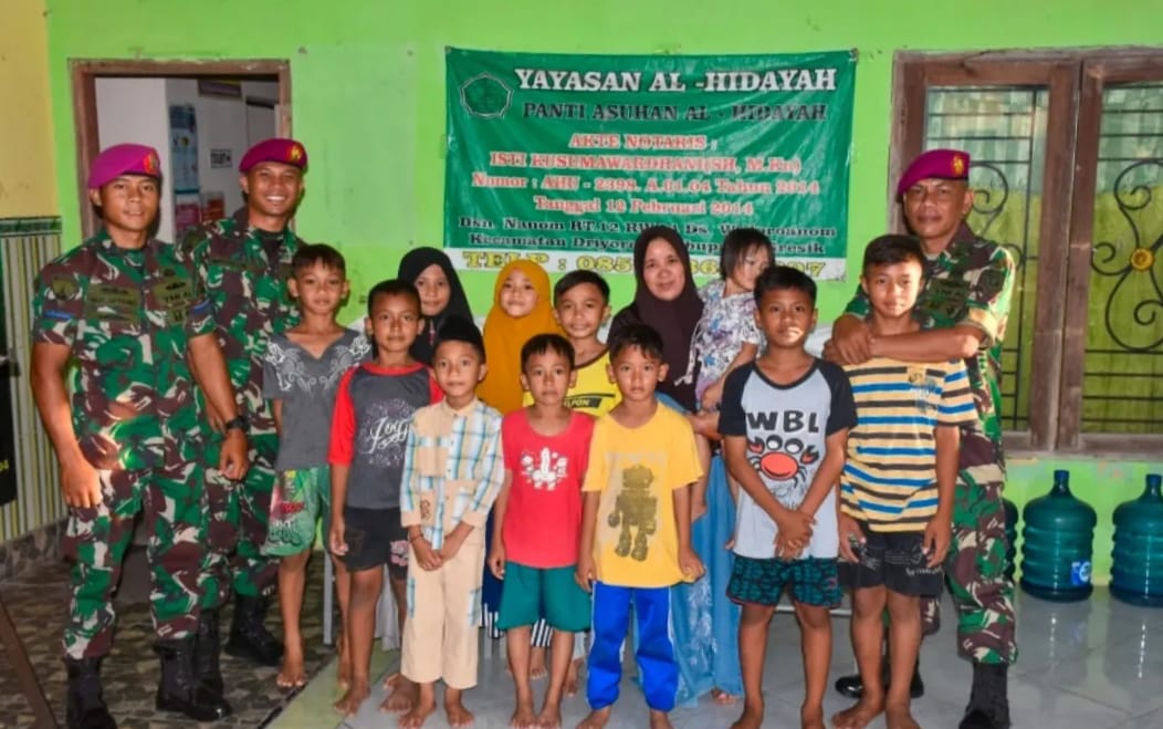 Gresik, IPers - TNI AL. Dispen Kormar - Personil Batalyon Arhanud 2 Marinir melaksanakan Bakti Sosial memberikan perlengkapan di Pondok Pesantren Al-Hidayah Desa Wedoroanom, Kecamatan Driyorejo, Gresik. Senin (27/02/2023)