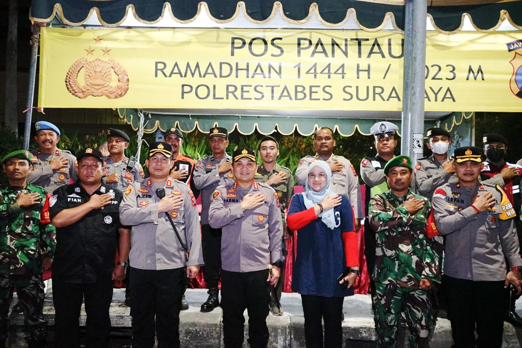 Personel dari TNI – Polri dan Pemerintah Kota Surabaya ini disebar pada titik rawan gangguan kamtibmas untuk melakukan pemantauan, pengamanan dan berpatroli.