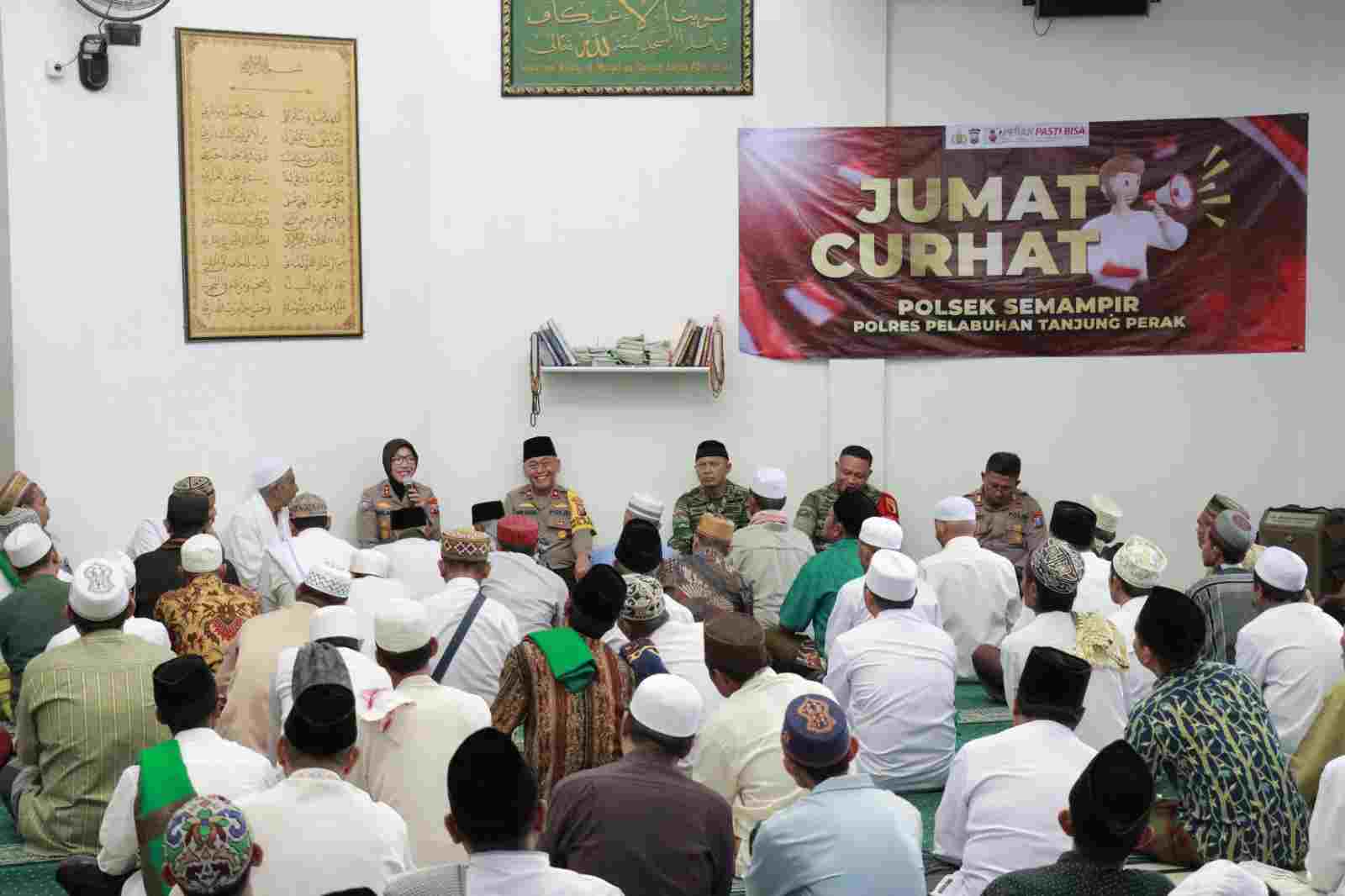 SURABAYA, IPers - Polres Pelabuhan Tanjung Perak menggelar giat "Jum'at Curhat," di Masjid Ahli Sunnah Waljama'ah di Jl. Bulak Jaya No. 1 Kel. Wonokusumo Kec. Semampir Surabaya, Jum"at (14 April 2023).