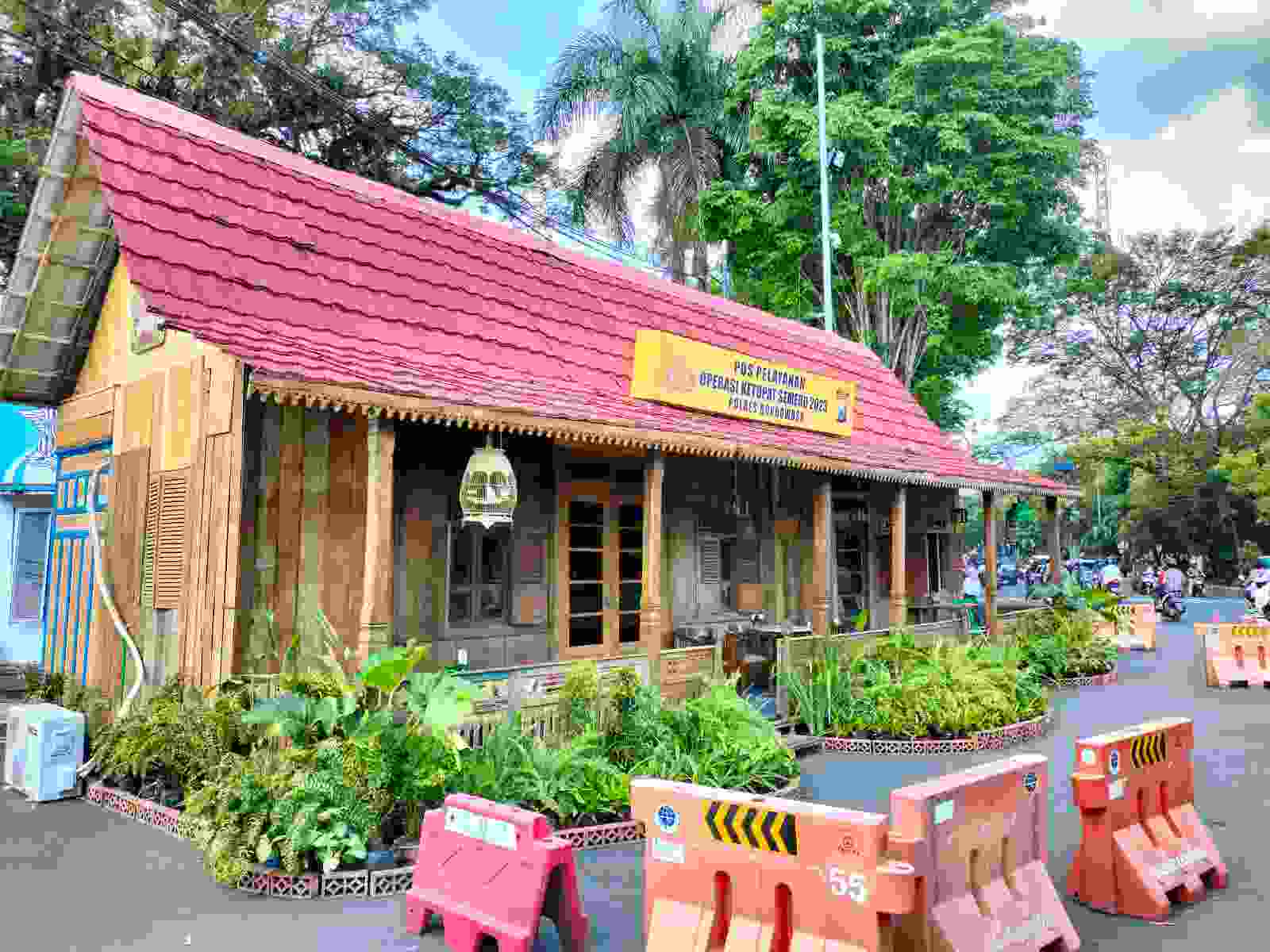 Pos pelayanan arus mudik dibentuk bernuansa klasik selayaknya Rumah Joglo khas Jawa.