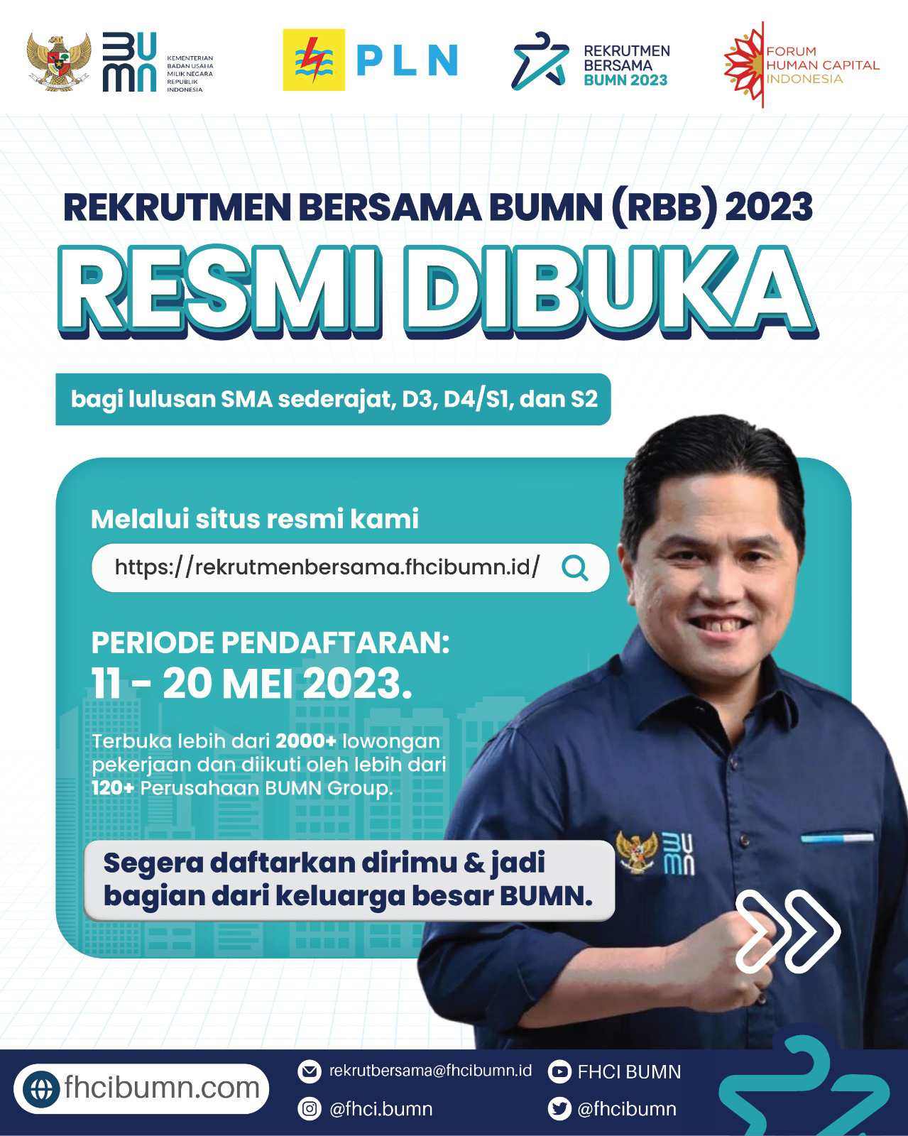 "Kami membuka kesempatan bagi putra-putri terbaik bangsa Indonesia, para lulusan diploma dan sarjana untuk bergabung bersama PLN dalam menyediakan akses listrik yang andal dan merata bagi seluruh rakyat Indonesia," ucap Direktur Utama PLN, Darmawan Prasodjo.