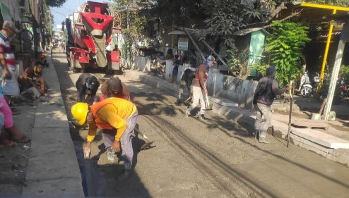Progres Bupati Sidoarjo Pengecoran Proyek Betonisasi Lapis Bawah Jalan Tropodo Waru Mulai Dikerjakan