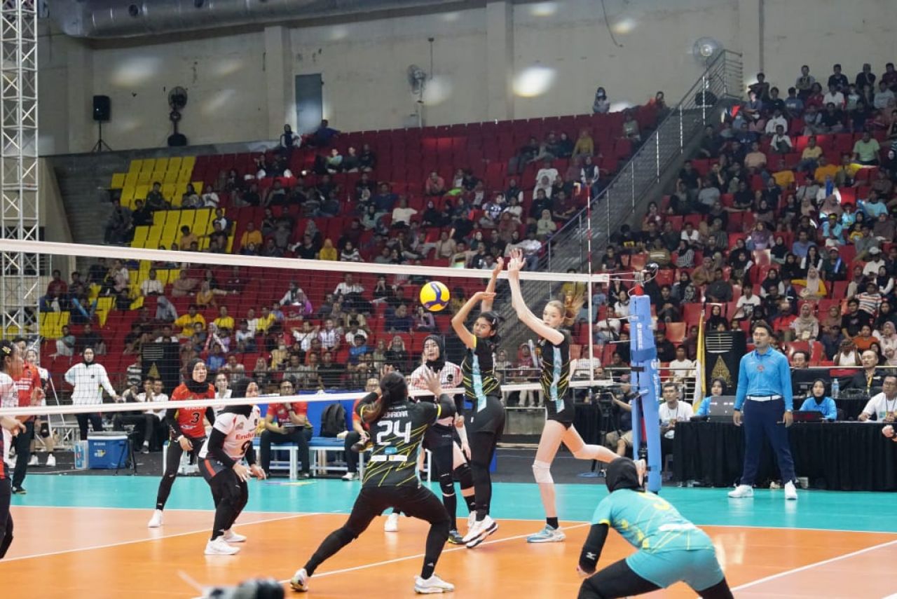 Dominasi terus ditunjukkan pemain Jakarta Electric PLN, yang membuatnya terus memimpin dengan skor 16-9 dan mengakhiri set pertama dengan skor 25-14.